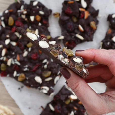 Vill du göra snabbt och gott julgodis - då är detta för dig! Kispiga majskakor, crunchy nötter och syrliga bär tillsammans med mörk choklad blir en perfekt kombo!
